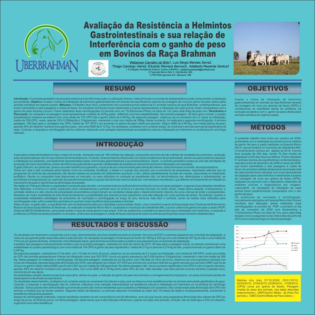 Avaliação da Resistência a Helmintos Gastrointestinais e Sua Relação de Interferência Com o Ganho Em Peso Em Bovinos da Raça Brahman