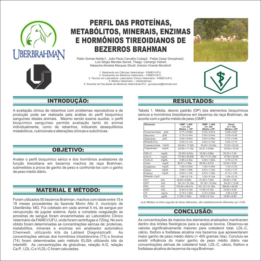 Perfil das Proteínas, Metabólitos, Minerais, Enzimas e Hormônios Tireoidianos de Bezerros Brahman